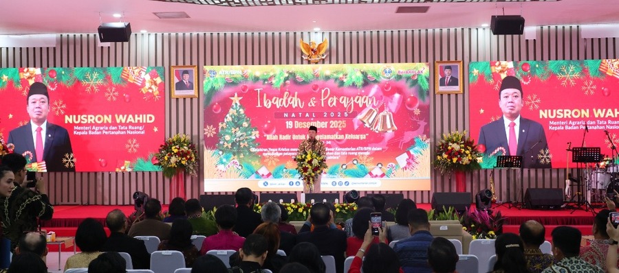 Kalsel.Radigfamedia.com, Jakarta – Menteri Agraria dan Tata Ruang/Kepala Badan Pertanahan Nasional (ATR/BPN), Nusron Wahid, membuka kegiatan Ibadah dan Perayaan Natal Keluarga Besar Persekutuan Umat Kristiani Kementerian ATR/BPN, yang digelar di Aula Prona Kementerian ATR/BPN, Jakarta, Jumat (19/12/2025). Dalam sambutannya, Menteri Nusron menegaskan pentingnya menjadikan esensi ajaran agama sebagai landasan utama dalam bekerja dan melayani masyarakat.