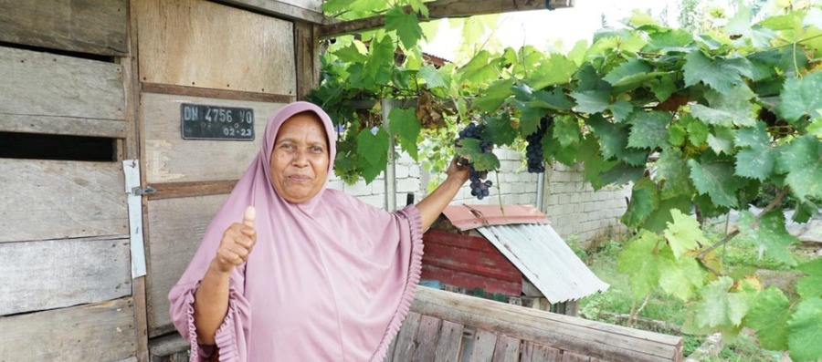 Manfaat kampung anggur juga dirasakan Ibu Sartini (60), seorang ibu rumah tangga yang kini mengelola enam pohon anggur. Tiga pohon di antaranya adalah bantuan dari program Kampung Anggur Duyu Bangkit. “Sekali panen bisa dapat satu juta,” ujarnya sambil menunjukkan batang anggur yang tumbuh besar dan kokoh.