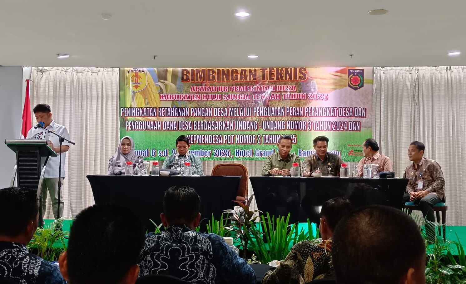 Kalsel.Radigfamedia.com, Banjarmasin – Bupati Hulu Sungai Tengah (HST) Samsul Rizal menghadiri kegiatan Bimbingan Teknis (Bimtek) Peningkatan Ketahanan Pangan bagi Aparat Desa, bertempat di Hotel Grand Tan Banjarmasin, Kamis (6/11/2025).