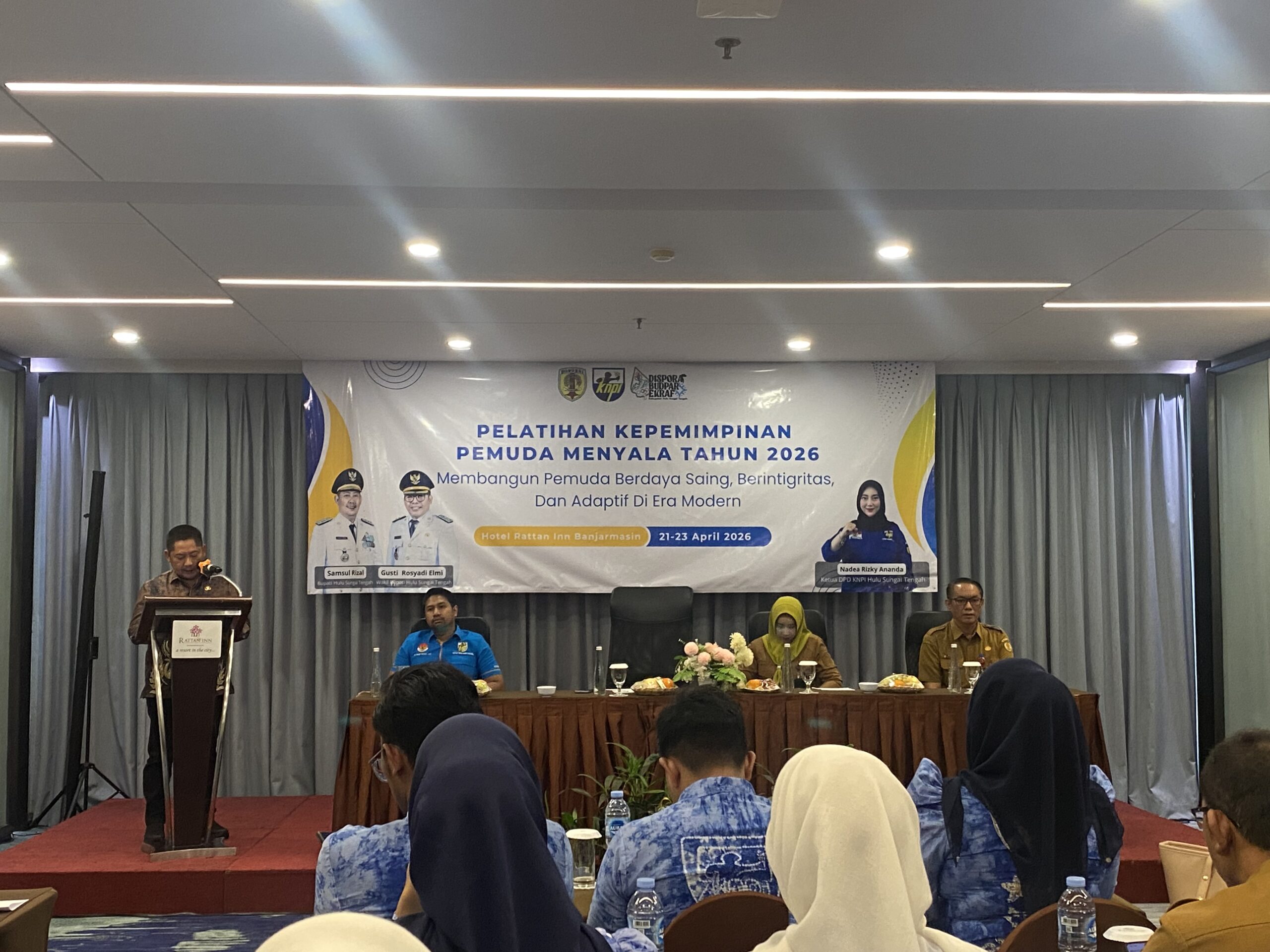 Komitmen Pemerintah Daerah Kabupaten Hulu Sungai Tengah (HST) dalam membangun generasi muda yang unggul kembali ditegaskan melalui Pelatihan Kepemimpinan Pemuda Menyala Tahun 2026 yang digelar oleh Dinas Pemuda, Olahraga, Kebudayaan, Pariwisata dan Ekonomi Kreatif (Disporabudparekrab) HST bersama KNPI HST.