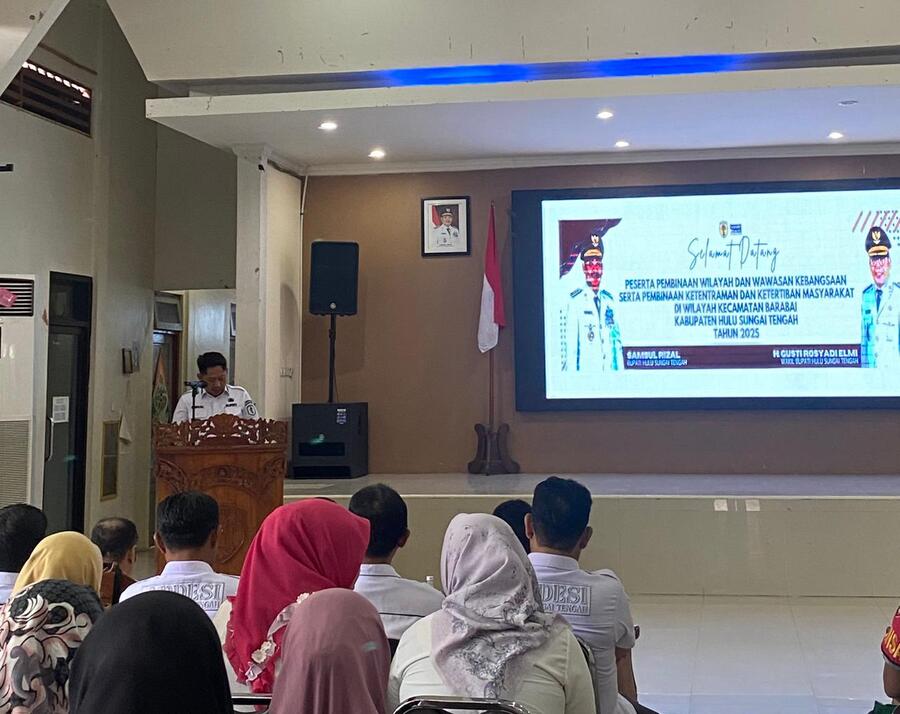 Kalsel.Radigfamedia.com, Hulu Sungai Tengah – Bupati Hulu Sungai Tengah (HST), Samsul Rizal, menyerukan pentingnya menjaga ketertiban dan keamanan daerah. Hal tersebut disampaikannya saat membuka kegiatan Pembinaan Ketentraman dan Ketertiban Umum serta Pembinaan Wilayah dan Wawasan Kebangsaan se-Kecamatan Barabai, yang berlangsung di Balai Rakyat Barabai, Rabu (8/10/2025).