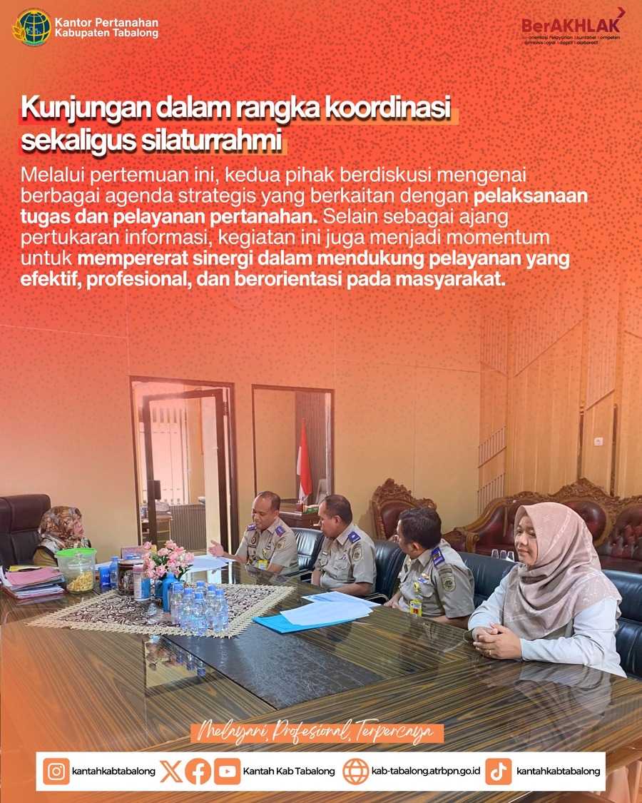Melalui kunjungan ini, diharapkan hubungan kerja antarinstansi terus terjalin dengan baik sehingga dapat berkontribusi pada peningkatan kualitas layanan pertanahan di Kabupaten Tabalong.