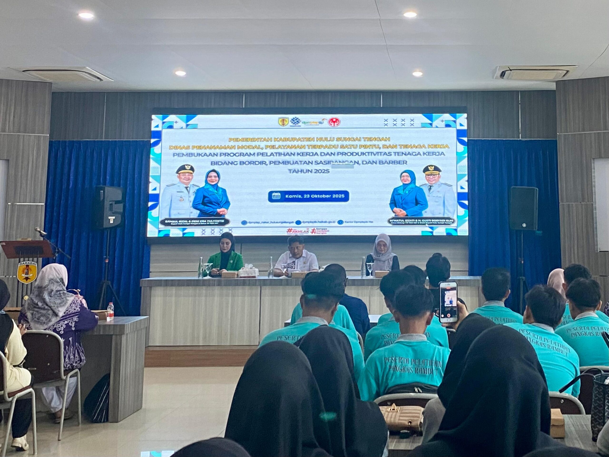 Kalsel.Radigfamedia.com, Hulu Sungai Tengah – Pemerintah Kabupaten Hulu Sungai Tengah (HST) melalui Dinas Penanaman Modal, Pelayanan Terpadu Satu Pintu, dan Tenaga Kerja (DPMPTSPTK) terus berupaya meningkatkan kualitas serta daya saing tenaga kerja lokal. Salah satu langkah konkret diwujudkan melalui Program Pelatihan Kerja dan Produktivitas Tenaga Kerja di bidang bordir, pembuatan kain sasirangan, dan barber shop bertempat di Aula Bapelitbangda HST Lantai II, Kamis (23/10/2025).