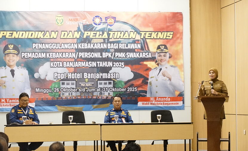 Kalsel.Radigfamedia.com, Banjarmasin – Upaya meningkatkan kemampuan dan profesionalisme personel, Dinas Pemadam Kebakaran dan Penyelamatan (Disdamkarmat) Kota Banjarmasin menggelar kegiatan Diklat Teknis Penanggulangan Kebakaran bagi puluhan personel PMK/BPK Swakarsa yang terdiri dari seluruh perwakilan kelompok masyarakat dan relawan di lima kecamatan, dijadwalkan berlangsung selama 6 hari 5 malam, mulai tanggal 26 hingga 31 Oktober 2025. Kegiatan itu dibuka oleh Wakil Wali Kota Banjarmasin, Hj. Ananda terpusat di Hotel Pop Banjarmasin, Senin (27/10).